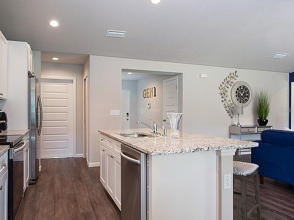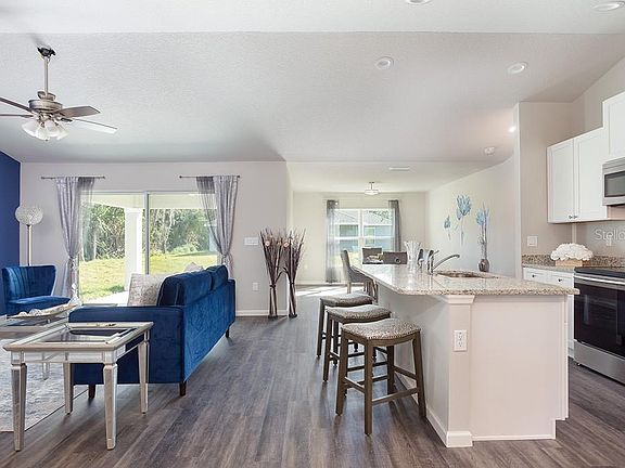 Under Construction. Incredible New Construction home includes features considered upgrades with most builder's and not often found in this price range. This home features high ceilings, nice foyer leading to an open great room, an Island kitchen & huge dining area. Lots of natural light with large windows & sliding glass doors to the covered lanai. The kitchen offers 36' bump & staggered cabinets with soft close doors/drawers & stainless appliances. Beautiful granite counters with under-mount double sink and side by side SS refrigerator. Luxury plank flooring & tile through-out, recessed lighting, ceiling fans in each room. 50 GAL hot water tank, R38 insulation,16 seer A/C. Smart home package that includes a video doorbell camera, Smart Hub and security Panel, 2 window sensors, 1 motion detector, garage control with WIFI, Smart programmable thermostat and Amazon Echo Dot. Projected Completion end of April. HOMES IS UNFURNISHED,PICTURES, PHOTOGRAPHS, FEATURES AND COLORS ARE FOR ILLUSTRATION PURPOSES ONLY AND WILL VARY FROM THE HOME BEING BUILT.