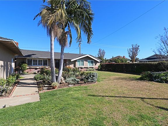 Single story ranch style home with 2,397 sq. ft. of living space located in a much sought after Orange neighborhood. The home is situated on a 9,840 sq. ft. corner lot with attractive landscaping. It’s a great floorplan for shared living. There are 3 bedrooms and 2 bathrooms on one side of the home and a large family room on the opposite side that could potentially be turned into another very large bedroom. This provides a great solution for multi-generational living. The floor plan includes a formal living room, dining room, family room and a huge bonus room addition. The family room has a wood burning brick fireplace, built-in cabinets and shelving, and lots of additional possibilities for its use (home office?). The oversized bonus room addition is large enough for almost any gathering. It features vaulted wood beam ceilings, used brick gas fireplace, and views of the covered patio and backyard through double French doors with two side lights that bring the outdoors in. The kitchen and dining room have been remodeled and include lots of additional storage space, pantry and serving counters. Upgrades include stainless steel double oven and gas cooktop. Black granite counter tops and white painted cabinets with raised panel doors make for a stunning up-to-date look. Upgraded wood look laminate floors in the kitchen, dining room, entry and hallway add the finishing touch to a great remodel. The original hardwood floors in the bedrooms have been refinished and stained to match. Other upgrades include crown molding, plantation shutters, ceiling fans, can lights and mirrored closet doors. The low maintenance backyard has a covered patio, in ground heated spa, and 1 large side yard storage shed. The secondary bathroom has direct access to the backyard through the inside laundry room. Being located on a corner lot, the property has RV access with a newer vinyl gate already installed. The front yard has a park-like setting with mature landscaping, flower gardens and a large fenced grass area. There is also a front yard patio for relaxation while listening to the sounds from the nearby water fountain. The home is walking distance to Taft Elementary and close to Cerro Villa Middle School and Villa Park High School. It’s also located close to Orange Lutheran High School and Chapman University. Local shopping includes Old Towne Orange and The Village of Orange. You’re just minutes from on-ramps to the 91, 55, 57 and 22 freeways.