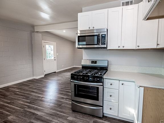 Come see this completely remodeled 3 bed 1 bath home in Colton! This corner lot home features recessed lighting, laminate flooring, new doors, tiled bathroom with shower/tub combo, brand new kitchen cabinets, quartz counters with all new stainless steel appliances. Dual pane windows, new HVAC system including ducting to keep you cool during those hot summer days and so much more! It's a must see to appreciate. Very close proximity to 10 and 215 freeways. Walking distance to schools and parks and more. Come see this before it's gone!