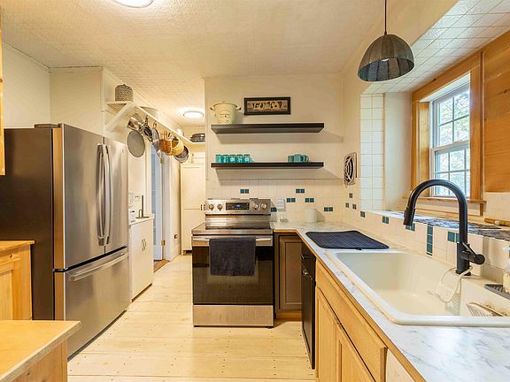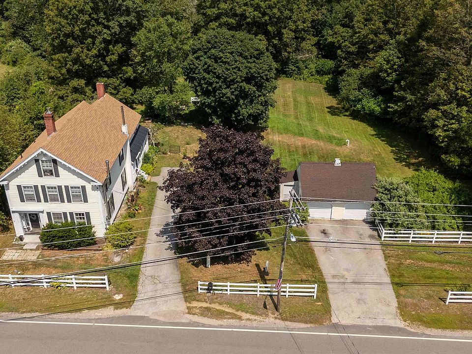 Discover timeless charm and modern convenience in this beautifully updated two-family Colonial home located in the heart of Gilmanton Iron Works. Situated on .9 acres of land, this spot is magical - with natural shade, and outlined by trees. The patio off of the sunroom is your own private oasis! Carriage house/garage can fit two cars inside and in front, or use the interior for storage. This property has 4 bedrooms and 2 full bathrooms, thoughtfully laid out with separate entrances for flexibility and privacy. Enjoy the outdoor fire pit, ample yard space, and the unbeatable location — walking distance to Iron Works Market, and just 2 miles from Crystal Lake, where you'll find a town beach, pavilion, and boat ramp. The seller has thoughtfully added modern touches while preserving the historic character of the home. Main home includes entry via the enclosed porch, with gorgeous wood flooring and natural light, wood stove, pellet stove, family room, living room, dining room, kitchen, full bath on 1st floor, 3 bedrooms on 2nd floor and a 3rd floor attic bonus space. The in-law unit welcomes you with a private foyer perfect for coats and shoes, leading up a stunning staircase to a sun-filled apartment with wood floors, an open-concept kitchen, bedroom with walk-in closet, and a cozy living room that exudes warmth and charm. Full basement with interior access and laundry. See attached features sheet for more in depth details. Delayed showings begin Friday 8/15 from 4-6 pm.