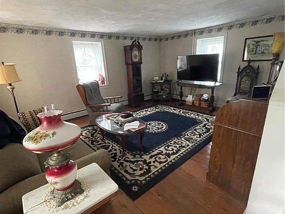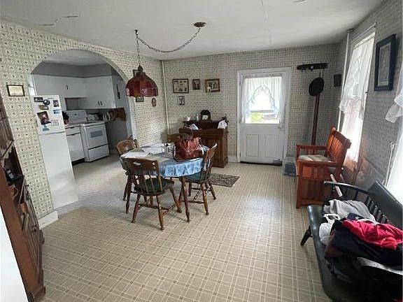 Charming colonial home which has been in the current family for several generations! Quuaint and cozy, this home offers a retro 1950's kitchen with loads of metal cabinets, a handy mudroom which could be converted into a pantry. Large dining room is the center of this home! Living room and second floor have original random width pumpkin pine floors, plaster walls and deep window sills. Cozy second floor has 2 full bedrooms and one small bedroom/office/den. Full bathroom offers a linen closet, tile floor. tub/shower.