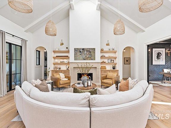 Thoughtfully designed by Legacy Homes, this home offers the pinnacle of luxury. Styled with an urban boho theme, the soft, neutral color palette is highlighted with natural elements and textures. The home exudes comfortable living spaces and architectural features make for unconventional living, romantic ideals, and creativity. Rec room, oversized butler's pantry, office/den, and an owner's suite that truly looks like a high-end resort spa. Spectacular rattan chandeliers line the great room creating a calm, serene environment for enjoying time with your loved ones. Complete with Wolf BBQ outdoor kitchen, hot tub, outdoor entertainment center around stunning brick fireplace. The community of Williamson River Ranch offers residents a private clubhouse & pool, direct access to the Greenbelt/Boise River, ponds & water features, and lush landscape.