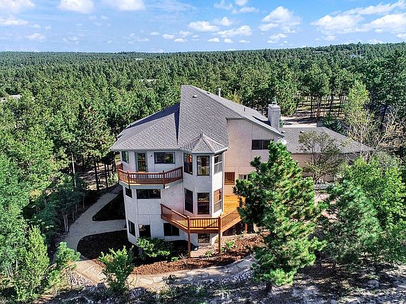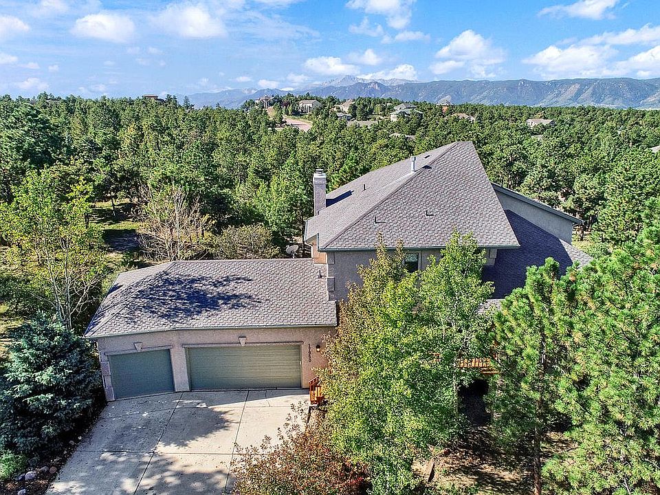 Don't miss you chance at this remarkable home minutes from Monument and I-25. This gorgeous custom built home is nestled on over 2.5 acres and feels like your own personal retreat in the woods. Magnificent 180 degree views of Pike's Pike and the entire Front Range! Greet guest with a walk up the newly finished front porch and hardwood floor inside. The kitchen is every chef's dream. Double oven, oversize island with granite counter top, huge pantry and spectacular view from the kitchen sink. This one won't disappoint! Spend the cold days this winter nestled by a wood burning fire in the family room or the gas fireplace in the formal living room. Upstairs you'll be able to enjoy the sunrise or sunset from the private deck off the master bedroom. Two other bedrooms upstairs both come with private bathrooms as well, perfect for guest or teenagers! Basement is perfect for you game room or man cave with walk out access and tons of natural light. Additional oversize 3 car garage is perfect for storing your RV or any other toys or use it as a shop. The possibilities are endless!