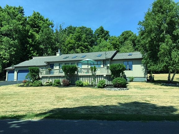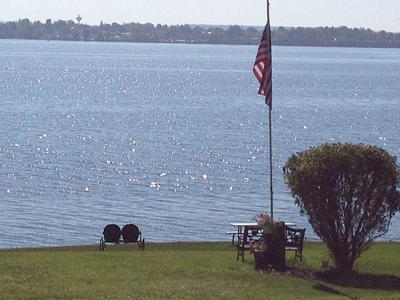 It isn't often you see a price reduction on a beautiful waterfront year round home. So take action now because if you're looking so is someone else. BEAUTIFUL waterfront home on over an acre of land and 150' of water frontage. LOTS of room inside and out. Over 2800+ sq ft on one level. Open concept with vaulted ceilings. Three bedrooms all with their own private bath. Enormous enormous family room overlooks the shaded back yard. So much space everywhere. Waterfront has its own boat ramp. A "I have to see this one for sure" home. ceilings and lots of skylights bring in an abundance of natural light. Super energy efficient home with low utility costs. Gorgeous oversized master suite with its own propane fireplace, Jacuzzi tub, unique tiled shower and walk in closet. Each of the two additional bedrooms have their own attached bath. Large family room with sliding doors to the back deck and another propane fireplace. And the views -- AWESOME! Whether viewing from inside or the large front deck you'll see historic Sackets Harbor in the distance and lovely sunsets & sunrises. Waterfront has boat ramp and gradual bottom for swimming. Central air.