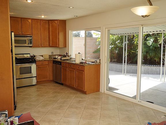 Great Neighborhood in Huntington Beach! Walk to Central Park! Only 1.5 miles to the BEACH Completely upgraded home on a Cul-de-Sac, very quite street. Huge backyard for entertaining! All stainless steel appliances (includes fridge). Newer kitchen cabs with granite counters. Newer travertine looking tile throughout. Newer hardwood floors throughtout. Both bathrooms are upgrades with travertine looking tiles and granite counters! Ceiling fans in all the rooms! Dual paned windows and doors! Absolutely charming home! Washer and dryer in garage are not under warranty.