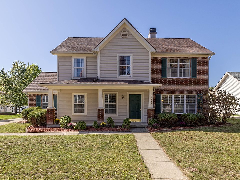 Great opportunity to buy a beautiful 4 Bedroom/2 1/2 Bath home in Oakmont Green. Inviting front elevation with relaxing covered front porch. The impressive two-story entry welcomes you in. Freshly painted inside with a popular grey toned color. Warm 16x14 Living Room with interior wood burning fireplace. Formal Dining Room open to the Living Room and Kitchen. The Kitchen features: white cabinets; all new Stainless Steel appliances; and new stylish granite countertops. The Primary Bedroom offers a full Bath and walk-in closet. Landing area at the top of the stairs would be a great place for a computer workspace. Many updates including: newer main level vinyl plank flooring; new carpet & Bathroom flooring; many new light fixtures; new accenting main level baseboards; new Bathroom sink fixtures; new toilets; & new Kitchen sink. Oversized garage with extra storage space. 14x10 screened-in porch. Enjoy the Goalrilla basketball hoop with plenty of room to play. Wonderful neighborhood amenities: pool; volleyball & basketball courts; playground; & nature area. Award winning Noblesville Schools! The sellers believe the shingles are around 3 years old. Just move in! Motivated sellers!