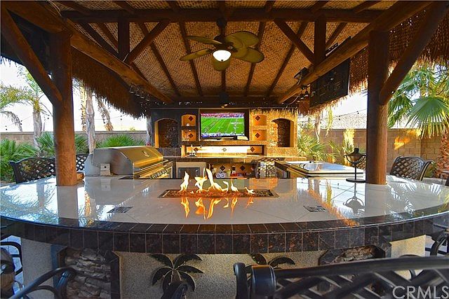 HUGE $30,000 PRICE DROP! Welcome to an Entertainers Paradise. Amazing Home with Swimming Pool and Rock Slide & Waterfall Combo. This Home Sits on a Premium Sized Lot Giving you Plenty of Privacy. Extra Large Covered Patio with Custom Concrete, Oversized Custom Palapa with Dining Area, Full Outdoor Commercial Grade Kitchen with Stainless Steel Appliances, 3 Flat Screen TV's, Built in Waterfalls, Built in Lighting, Upgraded Countertops with Built-in Fire Pit on table tops. This Backyard has it all! There is a Large Grass area, concrete space for extra tables and chairs, Custom Planters with Beautiful Palm Trees & Additional Custom Lighting for those Evening Gatherings. That's not all! This 2 Story Home has an Extra Large Driveway & Large 3 Car Garage. The Open Floor Plan is One of the most Sought After Floor Plans in this Development. This Home Boasts a Spacious Kitchen, Large Dining Room & Living Room, Spacious Indoor Laundry Room & 4 Large Bedrooms with 3 Full Bathrooms including a Spacious Upstairs Loft that can be used as a Family Room/Game Room. The Gorgeous Kitchen has Granite Countertops with a 6 Burner Stove & High End Stainless Appliances. Many more upgrades such as Travertine Tile Flooring, upgraded Carpeting, Custom Paint, Custom Window Shutters, Ceiling Fans, Recessed Lighting & Crown Molding. The Association includes a park, playground, pool & spa. Excellent Neighborhood, Central to Wonderful Schools, Day Cares, Colleges, Shopping Centers & Outstanding eateries.