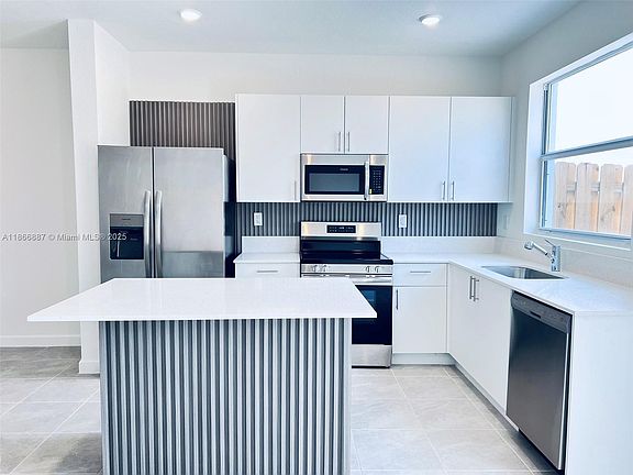 Quartz countertopsFenced backyardModern white kitchenStainless steel appliancesWalk-in closet