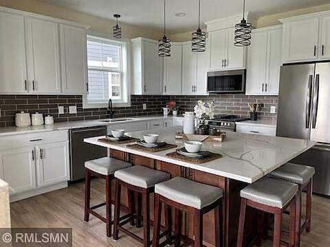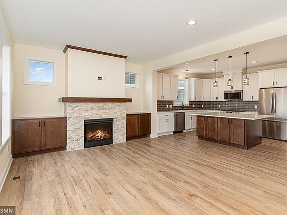 This newly built single-level home offers modern elegance and practical design. True one level living. The exterior features stone accents and large windows, while inside, an open concept living space includes a stylish kitchen with high-end appliances and a cozy living room with a fireplace built-in cabinets. The Owners suite boasts a luxurious bathrm and spacious walk-in/thru closet to laundry.2nd and third bedrm/ home office, laundry room finish off the main level. Additional lower level living space including a family room, bedroom, bathroom, and a fitness/flex room . Large windows for natural light. Home sits on a look out lot with view of pond and all its nature. Overall, this home combines luxury and functionality for comfortable living. Summer’s Creek neighborhood includes lawn and snow care for hassle-free living. Walking trails, shops, restaurants all near. Builder is Timeless Homes, Building homes since 1955.