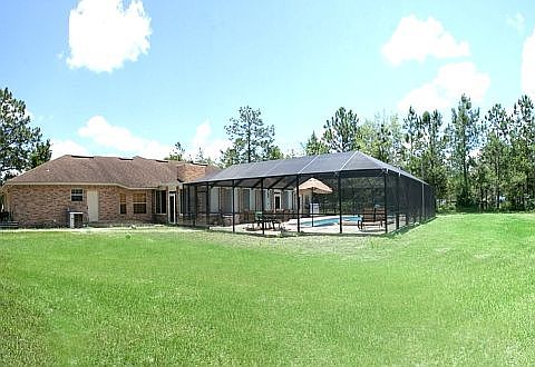 HERE IT IS!!!! BRICK HOME, POOL AND YES LAND TOO!!! full brick home with a gorgeous in-ground salt pool! Close to Jennings Forest with a total of 9.1 acres, including 2 ponds, make this a great property for horses or livestock. Land is separated into 2 parcels which would allow for an additional home on back acreage. This unique property is completely fenced with automatic gate, great floor plan, formal dining room, nicely appointed kitchen with pantry and breakfast nook, and family room with gas fireplace. Large master suite with double vanity, garden tub and separate shower, large conditioned Florida room overlooks the sparkling screened pool, outside pool bath to keep wet feet from tracking in, attached 2 car garage and so much more!