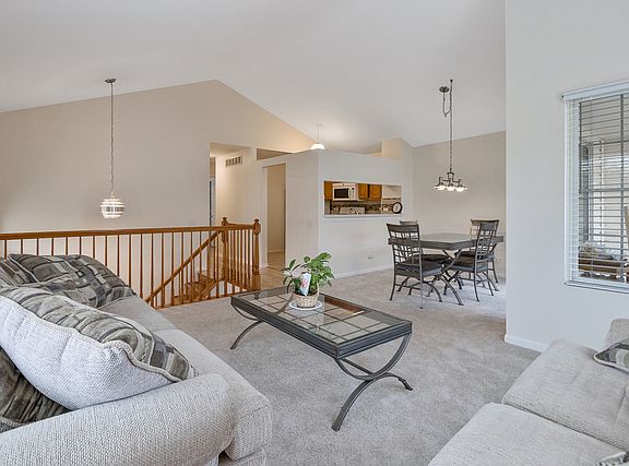 If you are ready for an easy move then this townhome is calling your name! This unique split level style allows for entertaining w/ an open concept floor plan that boasts vaulted ceilings, private balcony, new carpet, fresh neutral paint, & newly remodeled bathrooms w/floor to ceiling ceramic! The living & dining combo flows nicely into the separate kitchen that has a pass through window; perfect for cooking meals & mingling w/guests at the same time, or even asking for a quick hand with dinner! The master suite is host to it's very own private bath & walk in closet. The 2nd bedroom & 1/2 bath complete the 1st level. The lower level is where you will find the cozy family room w/fireplace that is tucked away for the ultimate peace & quiet, laundry room with new washer & dryer, and full bath! 2 car garage has an added bonus of large storage closet! Conveniently located near schools, playground, Metra train station, easy access to Rt 59, and walking distance to Harbor Springs Park!!
