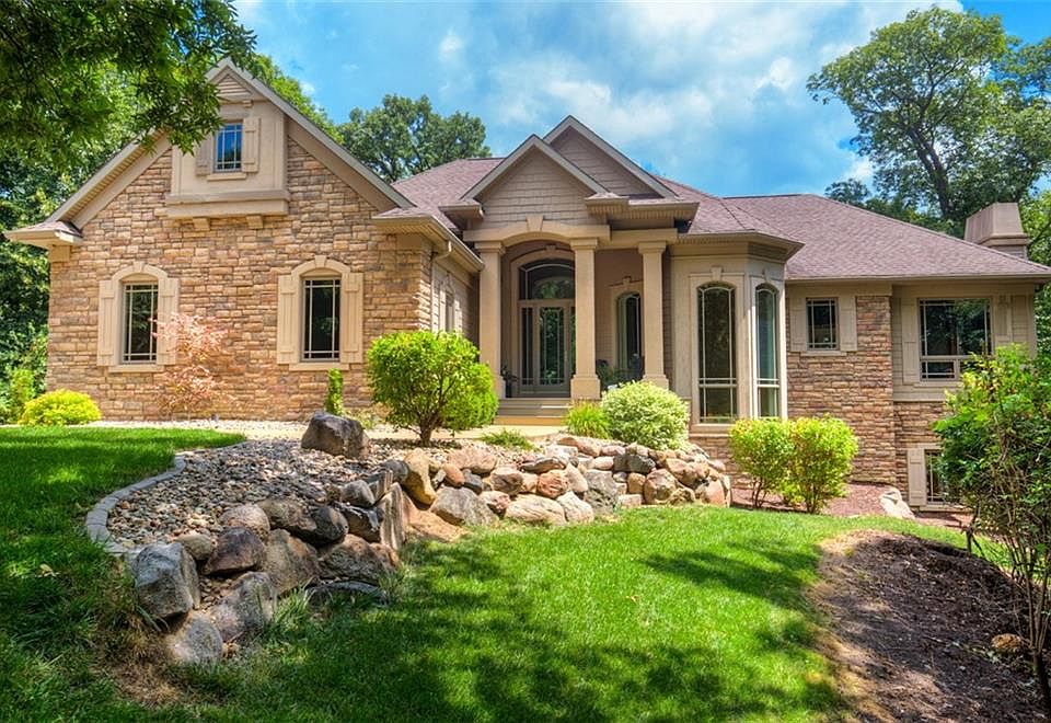 This amazing walkout ranch home is nestled on 2+ acres on a private cul-de-sac surrounded by timber. Hardwood floors, over-sized windows & sprawling ceilings welcome you inside to 4,610 sqft of luxurious finishes. A grand foyer, formal dining & sitting room set the stage. The kitchen features a large center island, granite counters, marble mosaic backsplash, Dacor & Bosch SS appliances & abundant cabinetry. A hearth room w/ fireplace off the kitchen & sunroom w/ access to the tiered deck & patio are perfect for entertaining! The spacious master en-suite offers tray ceiling, jetted tub, dual vanities, tile shower & walk-in closet. A drop zone w/ lockers, laundry room w/ sink & powder bath finish the main lvl. The finished LL offers 3 addtl bdrms, 2 bathrooms, stone surround FP, wet bar, sunken family room w/ theater set up & access to patio & amazing backyard w/ koi pond! Many upgrades including: epoxy garage floor, humidifier, irrigation, central vac, prof landscaping & composite deck!