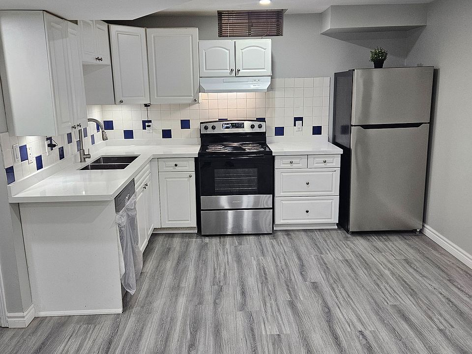 This lower-level unit offers a comfortable amount of space and has been updated throughout for easy day-to-day living. With approximately 1,100 sq.ft, it includes two good-sized bedrooms, a modern kitchen with quartz countertops, stainless steel appliances, and a dishwasher, along with an updated bathroom, pot lights, and new flooring. A walkable location to schools, parks, shopping, and transit - makes it an ideal place for families. Convenient access to Hwy 401/407 and the GO Station adds to the practicality. Shared laundry and one parking spot are included.