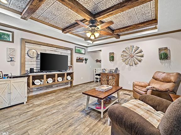 Situated on over an acre, and completely fenced with a gate, this mobile home offers a peaceful and private setting. The brand new 12x28 screened-in front deck is the perfect place to relax and catch glimpses of deer and other wildlife roaming the property. The inside of the home has so much charm and character! Beautiful luxury vinyl flooring that runs throughout, shiplap accent walls, and the wood beams with ceiling accents is the focal point of the living area. The open kitchen is equipped with a farmhouse sink, floating shelves, and a bar area for additional seating. There is also ample cabinet and counter space for cooking. The master bedroom is situated on its own side of the home and offers a double vanity, oversized soaking tub with a shiplap surround and accent wall, and a separate shower. In the backyard, you’ll find an 18x33 above ground swimming pool and two storage sheds equipped with power and lean-to, providing storage for your tools and lawn equipment. If you’re looking for a peaceful country setting, this is it!