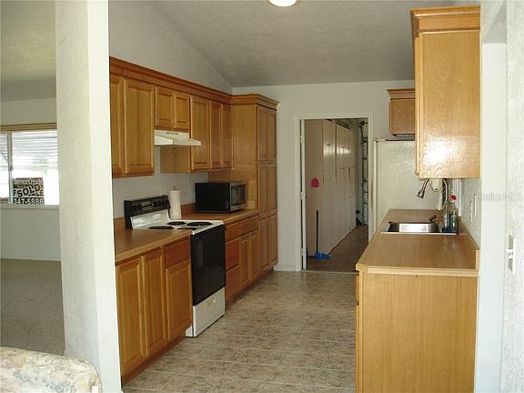 Golf Course Frontage home with beautiful views of the second hole at the Links of Spruce Creek. Lots of comfortable living area in this customized Redwood model. High ceilings, ceiling fans, skylight, 3 newer sliding glass doors with wide views of the Golf Course. The master bedroom offers a oversized Master bath with double sinks, separate soaking tub, walk in shower and a Huge Master Walk-In Closet. Enjoy the beautiful views from the oversized rear outdoor patio. Knock down textured walls and ceilings. No Popcorn ceilings! Great location within the community on a cul-de-sac street so no through traffic. Aggressively priced for Golf Course Frontage property.
