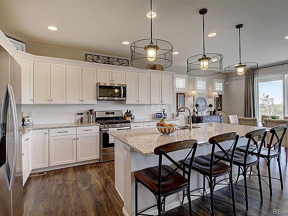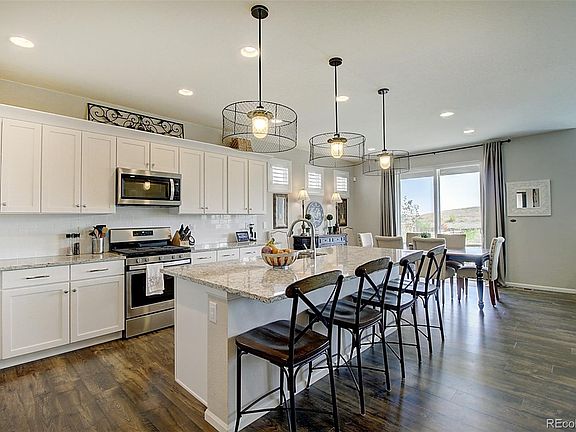 BEAUTIFUL single-family smart home in desirable Candelas Arvada! Convenient to both Denver and Boulder, your future home offers 4 Bedrooms and 2.5 Bathrooms. The main level features wide plank grey walnut colored flooring throughout, a private study, and a spacious open floor plan. The family room has a cozy gas fireplace, and a gorgeous eat-in Kitchen features granite slab countertops, bright-white shaker cabinets with crown molding, stainless steel appliances, and a large center island with breakfast bar seating x4! Upstairs, you'll find the Laundry Room conveniently located near all the bedrooms--no more hauling bulky laundry baskets up and down the stairs! Master Bedroom features a private 5-piece bathroom and walk-in closet. Hunter Douglas plantation shutters throughout. This home comes equipped with 2 HVAC systems so there are no hot or cold spots in the house and no need worry about maintaining energy efficiency. Enjoy a stunning view of the Flatirons! The fenced back yard has a covered patio and expansive stamped concrete patio--perfect for your grills and fire pit! The unfinished basement has egress windows, and is ready to accommodate your family's needs! Walk to the tennis courts and play park. You will be saying "Alexa, I'm home."