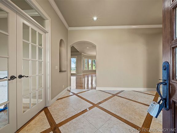 This gorgeous custom home is ~20 minutes to Tulsa. Enjoy beautiful, expansive views from the spacious outdoor living area. Open floor plan w/soaring ceilings, stunning hardwoods, Anderson windows, & saferoom. Cook's kitchen with extensive granite, butler's pantry, double oven, Sub-zero, & pantry. Two master suites down. Second master w/private entrance. Two bedrooms up, one w/private bath, theater room, game room, & flex room. 4 car garage w/shelves & h/c water. Private riding trails. Bixby Schools.