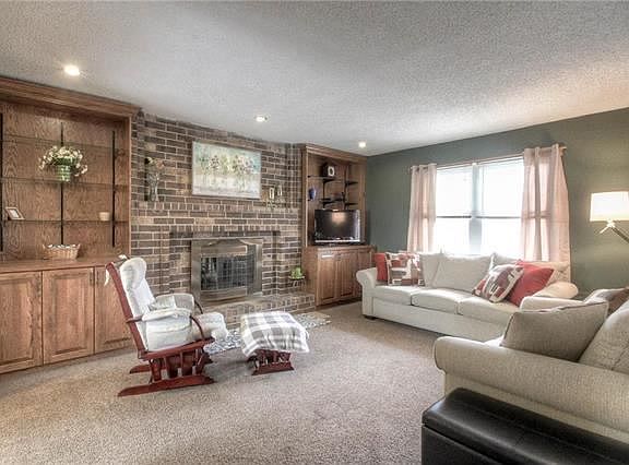 WOW! 1.4 acre m/llot- DARLING home w/great family friendly layout!OPEN kitchen/dining rooms walk out to large deck overlooking private tree backed lot.2 living areas- main floor great room w/cozy fireplace & built in cabinets w/glass shelving-2nd family room in lower level is HUGE w/full bath & walks out to patio area.Generous master suite includes a private half bath & double closets.2 other BIG bedrooms w/big closets.Rear entry 2 car garage.BIG storage shed.circle drive + rear parking.Newer windows.GREAT location