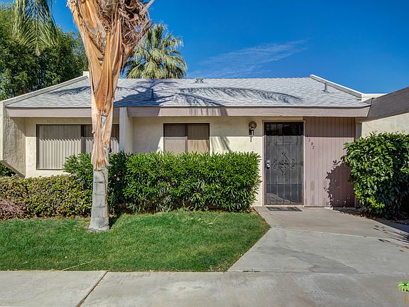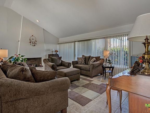 This precious desert gem has been impeccably maintained and obviously loved. The lush, private patio with peek-a-boo mountain views is just steps around to the pool. The bright galley kitchen opens to a sweet dining area with gorgeous San Jacinto views. The living room with vaulted ceiling is graced by the warmth and convenience of a gas fireplace. Down the hall, there's the ample guest bedroom and guest bath. Past the laundry closet (with full sized appliances,) to the master suite with walk-in closet and large bathroom. There's plenty of light, decent storage and a single car garage. Casa Sonora offers a swimmer's pool, a spa jacuzzi, two tennis courts, and a separate park for your dog. Basic cable TV is included with the HOA fees. Near Smoketree Village for shopping, banking and dining!