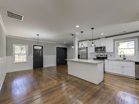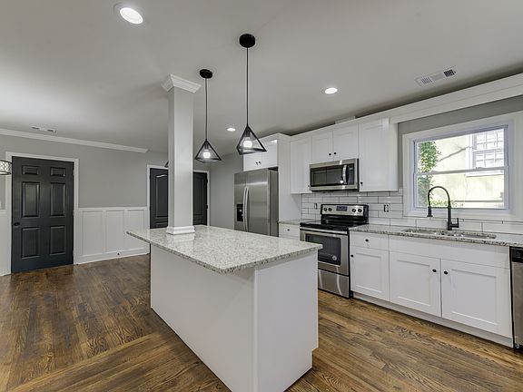 Charming, totally renovated bungalow in Burgess Hills, near I-285 and Glenwood Road. This open concept home features a brand new kitchen with stainless steel appliances, granite countertops, large island, and view to living/great room. Master suite has carpet, full tile bath, and walk-in closet. Two additional bedrooms and second full bath in hall. Hardwoods in main areas and carpet in bedrooms. Brand new front porch adds to the beautiful curb appeal and back deck overlooks spacious, fenced in backyard.
