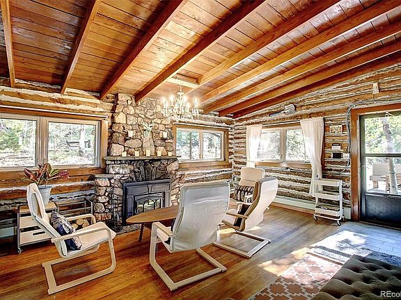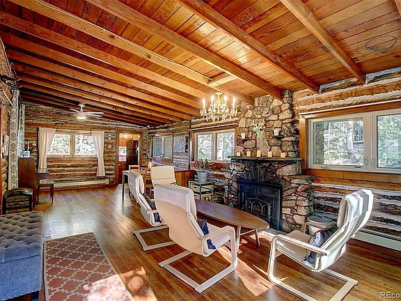 Welcome to your private sanctuary! This updated, dream log cabin near Golden Gate Canyon State Park is located off a quiet road (maintained by Gilpin County) and nestled among mature Pine and Aspen trees with STUNNING Mountain Views! Beautiful wood floors, 3 Bedrooms (including 1 non-conforming), and 2 Bathrooms. Main level fireplace and lower level HearthStone wood stove for those chilly mountain evenings, log accents, unique woodwork, and rock walls throughout lower level. Hardwood floors in the lower-level dining room, and remaining flooring replaced in the last 2 years with LVP and carpet. Updated Kitchen features granite-slab countertops and stainless-steel appliances with gas range. 2 decks offer breathtaking views of Mount Evans and Echo Mountain ski resort! Enjoy deer, elk, and all of nature's beauty. No HOA and low Gilpin County Taxes. Let this cozy cabin on 1.3 acres welcome you to year-round home or weekend retreat! 25 mins to Golden!