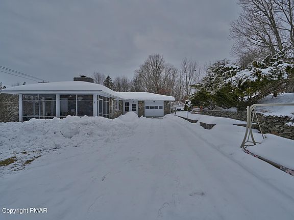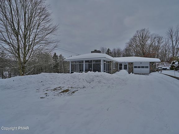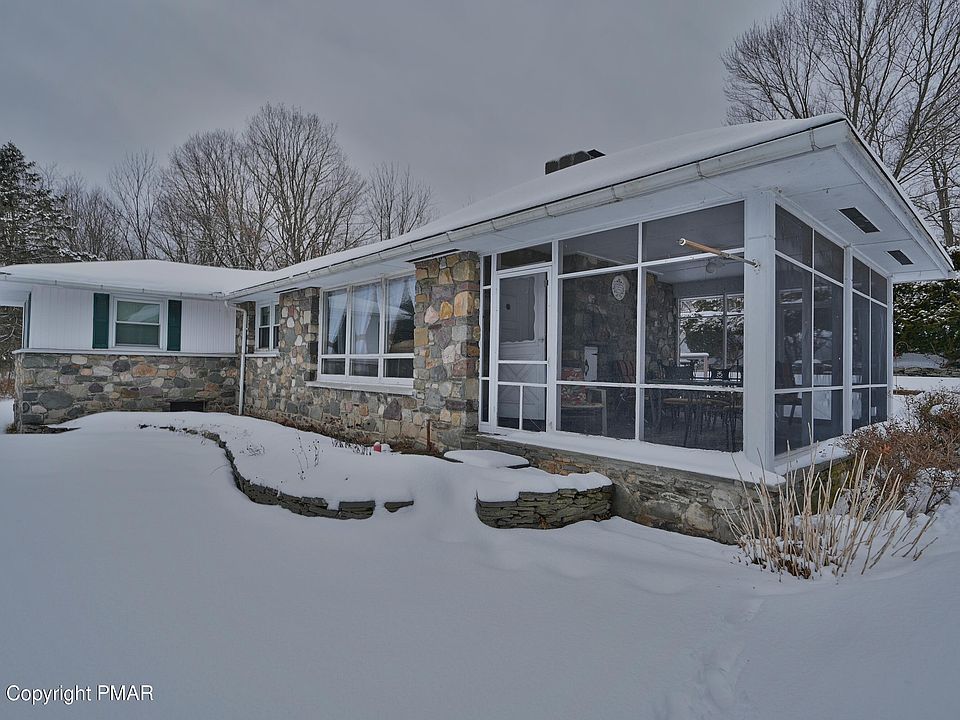 Year Round Lake View! This 3 Bedroom Ranch Home w/ Extra Large detached 24x24 Garage is Ideally Situated on 1.44 Acres and is A Commuters Dream, Within Minutes to Rtes 80/611. Home was built using Native Stone and allows a quiet Serene Setting while indoors, Features are a Floor to Ceiling Stone Wood Burning Fireplace, Hardwood Floors, Generously sized eat in Kitchen and Screened in Porch with year Round Lakeview's across the Way, Nicely Sized Bedrooms, Walk out Basement to the side Yard and enough yard space to enjoy Family Gatherings or just sit back and enjoy the Clean Mountain Air! and all the Poconos has to Offer, within Minutes to Northampton Community College, Crossings Premium Outlets, Camelback Mountain, Aquatopia and Camelbeach, Home is a rare find, Clean and ready to move