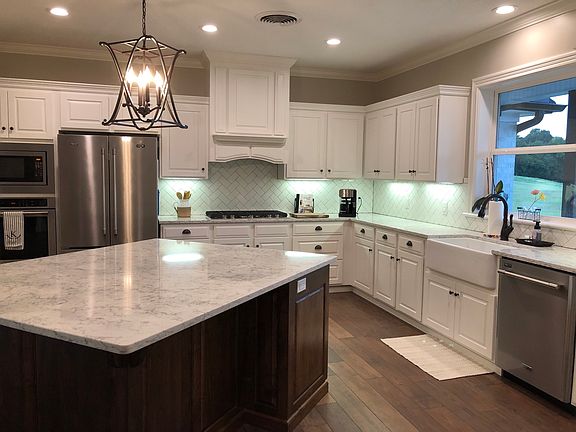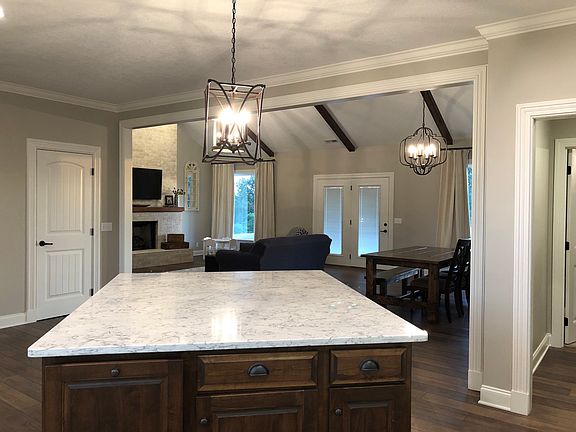 Stunning and secluded! This is a must see. Custom built 2400+\-heated sq ft. All brick home situated on 27 acres surrounded by 75+acres state ground with access to a watershed with boat ramp. Beautiful views! This 4 bedroom 2 1/2 bath features an open floor plan with beautiful crown molding, 2 coat closets, 3 storage/utility closets, custom cabinetry, quartz countertops, a beautiful farmhouse sink, along with all stainless steel appliances included and a very spacious pantry. The kitchen opens up to the dining and living room with a brick fireplace and vaulted ceilings as well as two large picture windows. All bedrooms are carpeted with crown molding and ceiling fans. Large laundry room is equipped with tile flooring, utility sink, extra counter space, and cabinetry. The master suite offers space with privacy separate from the other rooms and a beautiful tray ceiling connecting to the master bath with a spacious walk in tile shower, private toilet, and walk in closet with a custom built in dresser. This home also has a large garage with access to an attic for extra storage and an underground 1000 gallon propane tank.