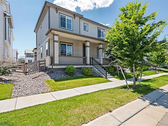 Fall in love with this beautiful home nestled in a vibrant, close-knit neighborhood just moments from community pools, tennis and pickleball courts, peaceful trails, and family-friendly parks. Imagine morning coffee on your charming covered front porch, evenings entertaining in your open-concept great room, and the joy of preparing meals in a chef’s kitchen featuring a gas stove, double oven, and thoughtful finishes throughout. Glass French doors open to a bright main-floor office—perfect for remote work or creative projects. Upstairs, spacious bedrooms offer restful retreats, while the full unfinished basement is a blank canvas ready for your dreams. The no-maintenance, fully landscaped with turf yard invites play, peace, and pride of ownership. Even better? Newer, fully paid-off solar panels offer energy savings and eco-friendly living. Enjoy walking by 2 beautiful ponds, meet with your friends at a cozy coffeehouse or recreation center (no charge for residents) just a short block from your new home. Community events such as fireworks, farmers markets and many others are right outside of your new home! With shops, restaurants, and top amenities just around the corner, this is more than a house—it’s a place to truly belong.