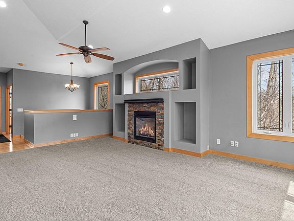 Welcome to this stunning home in Lakeville, designed for comfort and style. With southeast exposure and vaulted ceilings, natural light fills the spacious living areas, creating a bright and inviting atmosphere. The home features two brick, gas-burning fireplaces, adding warmth and charm to both levels. The main-level primary suite offers a private retreat with a luxurious bathroom featuring heated floors. The generously sized kitchen provides ample space for cooking and entertaining. The versatile lower level includes a wet bar, two additional bedrooms, and plenty of space to relax or host guests. Step outside to a large private deck overlooking a serene pond and wooded area, offering a secluded and peaceful setting. This home perfectly blends modern convenience with natural beauty—don’t miss the opportunity to make it yours!