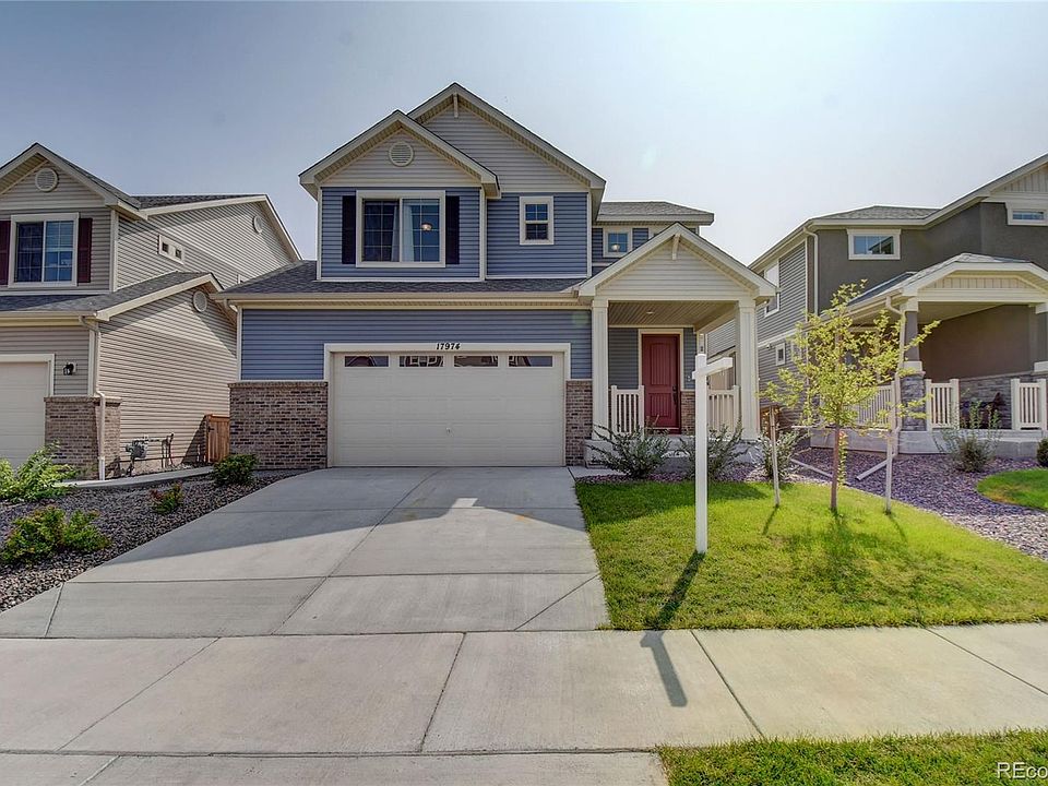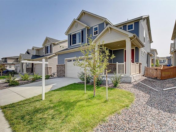 Welcome to your new Home Sweet Home in Reunion! This almost new (2 years young) meticulously maintained Traditional style 2 story home "smart home" has 3 bedrooms, 2.5 baths, a 2.5 car garage, fully fenced backyard, and a large concrete patio - perfect for Summer bar-b-ques, Ring doorbell, and smart thermostat! As you enter you will immediately notice the beautiful wide plank whitewashed engineered hardwoods that are throughout main living area, the light and bright open-concept living space opens to the upgraded kitchen that features a HUGE granite center island with seating, pendant lighting, white cabinetry with roll out shelves and plenty of storage, stainless steel appliances, an upgraded 5 burner gas stove, and dual ovens - perfect for entertaining. Upstairs features 3 generous bedrooms, including a Master Suite with a large walk-in closet and a 5 piece en-suite bathroom with large spa shower. The secondary bedrooms are perfectly paired with an additional upstairs full bath and a conveniently located laundry room - the washer and dryer to stay. The unfinished basement (700+ square feet) has rough in plumbing and is ready for your storage needs or to finish as you desire. Just a 5 minute walk out your front door is Reunion Park, the Coffee House, Pond, 10 miles of biking/hiking trails, the Recreation Center with pool and water park, and Buffalo Run Golf Course is close by. Access to E-470 is about 1 mile, DIA is less than 10 miles, Easy access to I-70 and I-25, NO-CO, Barr Lake State Park. Grocery stores and restaurants are just 5 minutes from your door!
