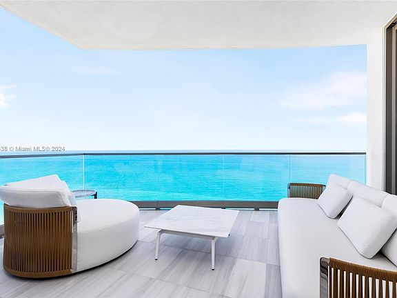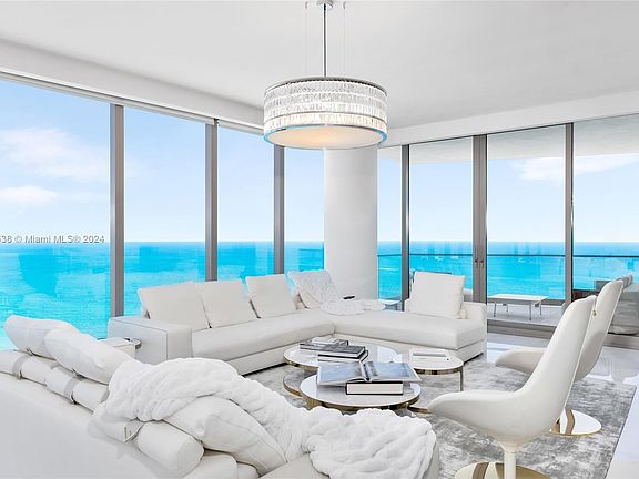 Welcome to this 44th Floor 4-bedroom 5.5-balth flow-through residence with spectacular sunrise and sunset views in the ultra-luxurious and highly sought-after Estates at Acqualina. A 14-foot long island, a gas La Cornue range, a pizza oven, and a steam oven grace the kitchen. Elegant touches like Onyx stone throughout the master bath and marble floors in every room of the home. The back terrace comes with an outdoor kitchen and sauna. Experience 5-star resort-like amenities, including pools, spa and fitness center, restaurant, and more. Fully furnished by Luxury Living: Fendi & Bentley furniture & rugs.
