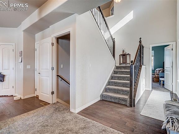 STUNNING Saint Aubyn Jackson floorplan available in Monument! The moment you step inside, the grandeur of double tall ceilings welcomes you, leading to a versatile flex room—a perfect multi-use space for your office or creative needs.while the kitchen and dining room showcase sophisticated engineered hardwood flooring. The open concept seamlessly connects the living room to the kitchen, inviting you to step out onto the composite deck with awe-inspiring panoramic views of Pikes Peak and the surrounding mountain range.Upstairs, a small loft space, a practical laundry room, a full bathroom, and three bedrooms await, alongside the master retreat. The master suite boasts a unique 2-way fireplace adjacent to a spacious soaker tub. The 5-piece adjoined bathroom offers a huge closet, dual vanity with granite countertops, and elegant tile flooring.The finished basement adds an extra layer of luxury, featuring a custom wet bar with beer and wine fridge, oversized cabinets, quartz countertops, and stylish luxury plank vinyl flooring. Recessed lighting creates an inviting atmosphere, perfect for entertaining. The basement also includes a fifth bedroom, a 3/4 bathroom, and a storage room, all with proper permits available.Situated just minutes away from shops, restaurants, and downtown Monument, this property is a true gem. You truly have to see it to believe it, so make sure to schedule your viewing quickly before this dream home slips away!