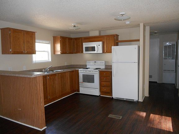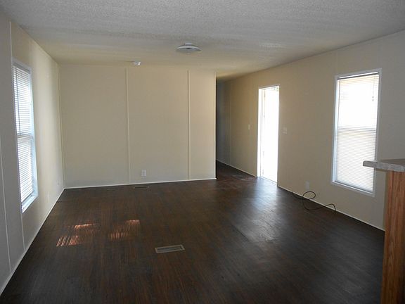 This mobile home is a 3 Bedroom, 1 Bath, it contains a refrigerator, stove, microwave, & washer and dryer connections. The mobile home uses propane for the heating, and central ac/heat. There is a covered front and back porch. There are NO PETS ALLOWED at this property. $25 CASH CREDIT APPLICATION!!