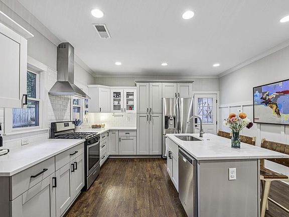 Nestled on a quiet, tree-lined street in Sylvan Hills, this fully restored 1935 Craftsman perfectly showcases the home's timeless charm enhanced with modern sophistication and designer upgrades throughout. Step inside to discover soaring ceilings, exposed beams, and refinished original hardwood floors that flow throughout the open-concept living space. The original wood-burning fireplace nods to the home's historic roots, while designer lighting, custom tile, and a chef's kitchen with a gas range and oversized island bring a fresh, contemporary edge.The primary suite is a serene retreat, featuring elegant finishes and a beautifully appointed ensuite bath. Step outside and imagine enjoying your morning coffee on the front porch. Out back you'll notice a spacious back deck, and thoughtfully landscaped yard, complete with a fully functional stock tank pool, transforming the space into your own private oasis. Ideally located just moments from Perkerson Park's lush green space, Lakewood Amphitheater, Tyler Perry Studios, and exciting new developments like Lee + White along the Westside BeltLine, this home offers unbeatable access to it all. The closest MARTA station is just a mile away, adding even more convenience. Blending the beauty of a classic Craftsman with the peace of mind of a new build, this thoughtfully designed, move-in ready home is filled with character and truly has it all.