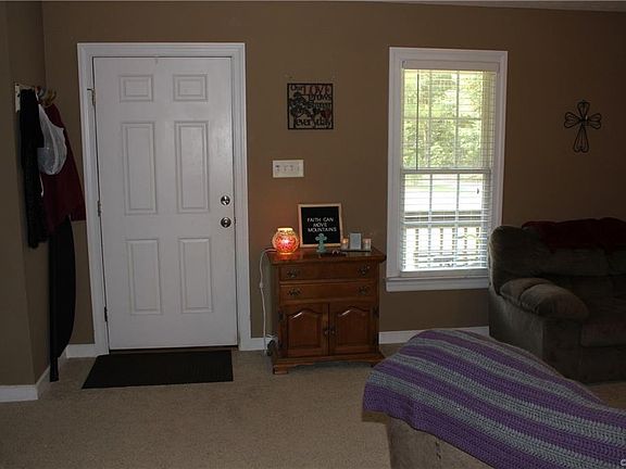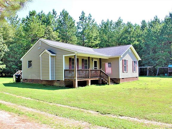 Fall in love with this gorgeous country charmer, featuring over 1,300 square feet, 3 spacious bedrooms and 2 full baths. Enjoy a private country living experience on a full front porch and rear deck surrounded by 5 wooded acres. As you step off the front porch through the front door you're greeted by an open floor plan with vaulted ceilings and equipped with a gas fireplace and an abundance of natural lighting. This home features a nicely sized living room that opens to the eat-in kitchen. Well maintained home is move in ready with lots of features including raised panel, Knotty Pines cabinetry, custom trim, tilt windows, an artesian well and a whole house water filtration system. This has a split bedroom arrangement with 2 bedrooms at the front of the house and a master bedroom at the back with a master bath and walk in closet. Locates just minutes from the schools and local dining and shopping. Seller is offering a one year warranty. Outdoor play-set conveys