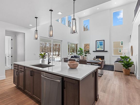 The last available highly sought after PLAN 4! Main floor living at its finest! This upgraded home situated on a premier perimeter lot, lives like a single story with main floor master & daily living but has a grand feel. 16' vaulted ceilings in the living & lots of windows throughout. Extra space upstairs for guests with 2 additional bedrooms/ bath & a loft. Enjoy life outside with Backyard bbq's sitting under the HUGE covered, partially enclosed patio. This calm & relaxing, low maintenance home allows for going on daily bike rides and adventures right outside your door, and coming back to a house you'll love calling home. Fully landscaped front and rear & fully fenced! Only seven of this popular Plan 4 in the community! Don't miss! For the Peace seekers to the adventurers, there is a lifestyle in Base Camp for everyone! Home to be completed September, 2024. Stock Photos