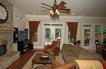 This 5-yr NEW home is meticulously maintained! Features include a rocking chair front porch, hardwood floors throughout, stainless appliances, coffered ceilings, granite, travertine in mstr, surround sound, 1st flr office and more! Back patio with pergola overlooking lvl, fenced byard.