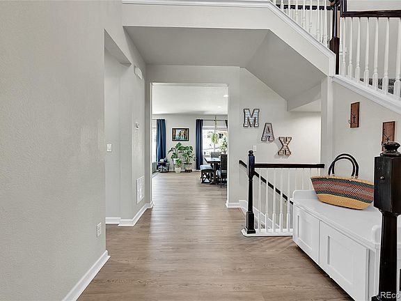 Welcome to your dream home in the coveted Salisbury Heights neighborhood of Parker! This stunning 5-bedroom, 4-bathroom residence offers a blend of comfort, style, & functionality. As you step inside, you'll notice the meticulous attention to detail and the sense of warmth that envelops the home. The main level boasts a convenient bedroom/office, and full bathroom, providing flexibility for guests or multi-generational living. The basement adds even more versatility with another full bathroom, bedroom, & an entertainment room complete with a rough-in wet bar, awaiting your personal touch. A highlight of this home is the Murphy door bookcase, concealing abundant unfinished storage & workspace. Upstairs, the primary suite and two additional bedrooms await off the loft area, along with the convenience of a spacious upstairs laundry room. Step outside to discover the beautifully landscaped lot, spanning almost a quarter-acre with apple trees, blue spruce, 3 garden beds, a privacy fence and covered back patio, perfect for outdoor gatherings and relaxation. Recent upgrades include new carpet & luxury vinyl plank flooring installed in 2024 on the main & upper levels, adding a touch of contemporary elegance. The spacious open-concept kitchen and family room area are ideal for entertaining, featuring a huge pantry and mudroom for added convenience. Car enthusiasts will appreciate the 3-car tandem garage, complete with a workbench, attached shelving, and bike hooks, offering ample space for storage and hobbies. This home also comes with the added benefit of an assumable VA loan at a competitive 4% interest rate, as well as seller-owned solar panels, providing energy efficiency & cost savings. Exceptionally maintained and offering an abundance of space, this home is truly one you must see. Don't miss out on the opportunity to make this your forever home. Schedule your showing today and experience the epitome of modern living in Parker's Salisbury Heights neighborhood!