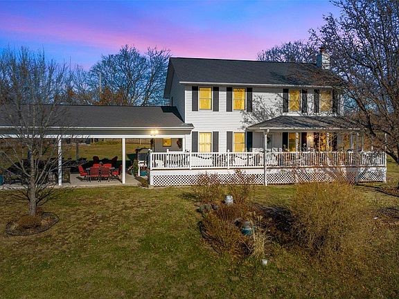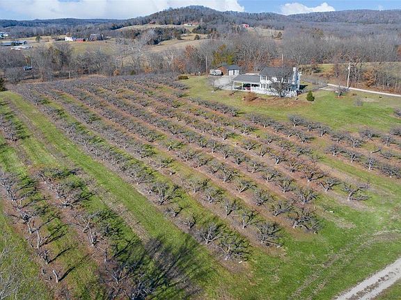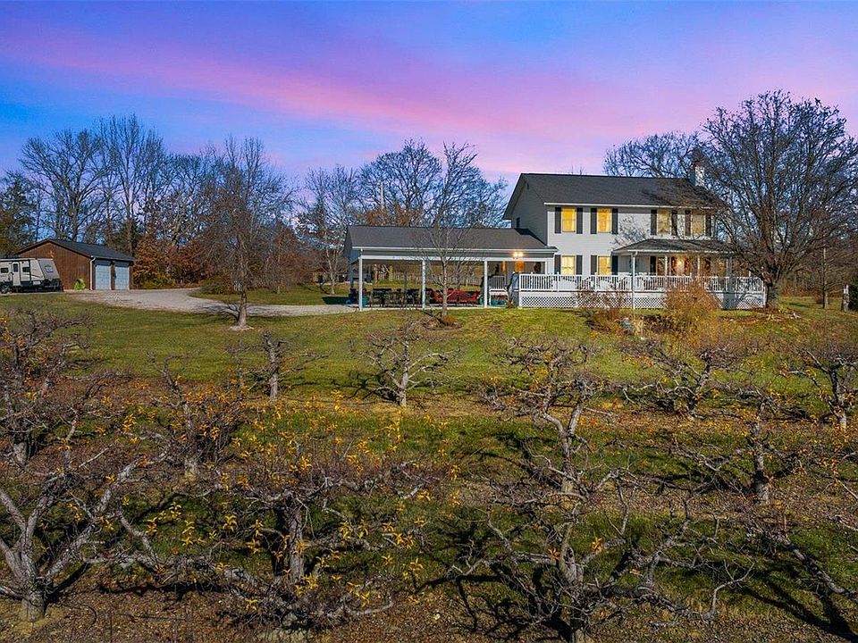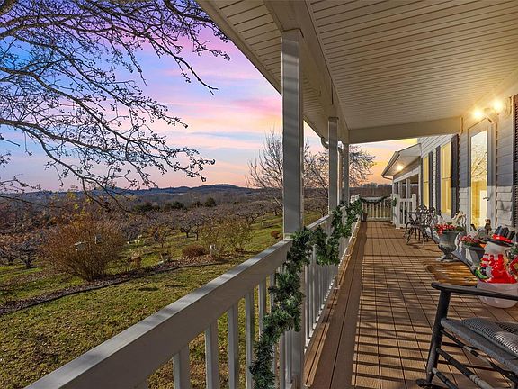 LIKE STEPPING INTO A HALLMARK MOVIE 5.98 ACRES!!! This Apple Orchard Farm House Features spectacular country views from your wraparound/partial covered front porch, enjoy family gatherings under attached oversized carport/patio area. UPDATES GALORE!! All new flooring throughout this 3+ bedroom, 2.5 bath home features large living space & bedrooms, bay window, center island, beautiful custom built-ins with new stone fireplace in living room, main floor laundry, main flex room that could be used as a 4th bedroom, cedar lined closet in lower level w/ family/rec room areas & full bath plus plumbing for wet bar, newer zoned HVAC system, det garage with drive thru door, picket fenced yard area with hot tub! Peaceful back yard retreat surrounded by nature's beauty. Don't miss this unique property that comes with breathtaking views of an enchanting apple orchard. Additional Rooms: Mud Room