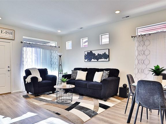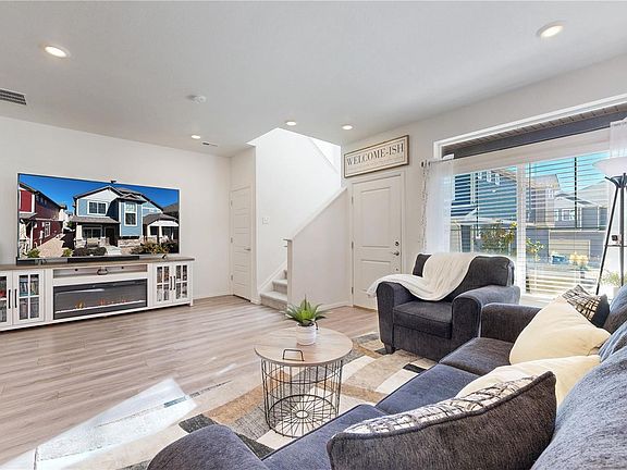 Wow — 3 bedrooms, a huge loft, a 2-car garage, and upgraded finishes in a nearly new home in Reunion, all at this price! The thoughtful layout and stylish features of this home, combined with the incredible amenities in Reunion, are sure to keep you smiling for years to come. The open and bright great-room design features luxury vinyl plank flooring that flows through the spacious living area—adorned with clerestory windows for extra light—past the dining area and to the beautiful extended granite island, accented by a trio of pendant lights. Shaker cabinets with pull-out drawers, a subway-tile backsplash, stainless appliances, a pantry, and a built-in refrigerator nook add both modern style and everyday function to the kitchen. Still on the main floor, you'll also appreciate access to the attached 2-car garage, a powder bath, and abundant storage in the closets and crawl space. Upstairs, a large versatile loft works perfectly as a home office, playroom, or second living space—and could easily be converted into a fourth bedroom. The primary suite includes an ensuite bath and walk-in closet, with upgrades including a granite double vanity and tiled walk-in shower. Two additional bedrooms, a full bath, and a convenient laundry room complete the second level. The Reunion amenities are second to none, featuring two large swimming pools with slides, a world-class recreation center with gym and basketball courts, over 150 acres of parks, tennis and pickleball courts, and so much more. Additional highlights include a charming front porch, low-maintenance xeriscaped yard, and unbeatable location—just 15 minutes to DIA, 10 minutes to an award-winning golf course, 15 minutes to shopping at Prairie Center, and only 25 minutes to downtown Denver.