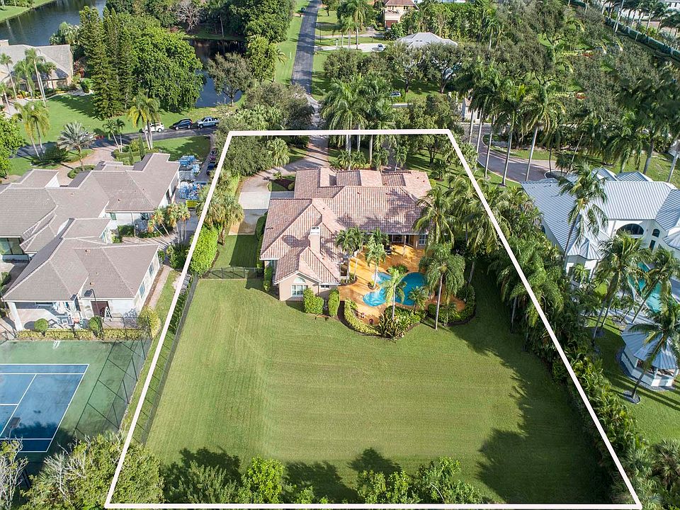 Rare 1 Acre +/- 4 bedroom 3.5 bath, 5605 total living sq. ft. residence in exclusive Fieldbrook Estates, a gated enclave of 54 homes nestled around a picturesque lake. Desirable design with 14' flat ceilings, open concept kitchen/breakfast area/family room and split floorplan. Kitchen touts chef's island, granite countertops and stainless appliances.Family room with fireplace has walls of glass overlooking expansive tropically landscaped backyard. Club room, handsome study, and expansive master suite with sumptuous master bath. Generator, 10 year new roof. Fieldbrook Estates is ideally located within minutes of St. Andrews and Pine Crest schools, Spanish River Community High School, I 95, Town Center at Boca Raton, and a short drive to the beach and famed Atlantic Avenue in Delray Beach