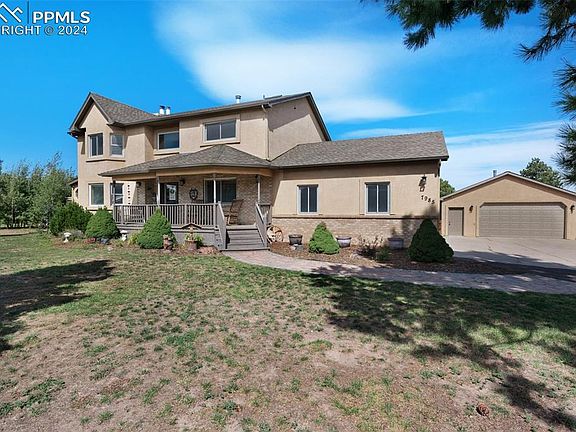 Make "The Joyful Farmhouse" yours! From the moment you step onto the welcoming front porch of this lovely home, you can tell that rustic comfort awaits you inside. This Joanna Gaines inspired home sits on almost 1 acre and includes features like shiplap, reclaimed wood, hardwood floors, granite counters, gourmet kitchen appliances, a sunroom, and much more! We haven't forgotten about the gentlemen! There is a finished basement and a separate workshop in the detached two car garage for a total of 4 cars able to be garaged. Step outside to experience all the joys this property has to offer. This amazing property has been fully fenced in the rear with a shed and extra storage. Walking distance to Kilmer Elementary School. Enjoy family time with a swing set and a stone fire pit for evening campfires and s'mores. The separate garage/workshop is insulated and heated with a wood stove and electric heat for use all year long. This is truly country living with all the conveniences of town nearby. Easy commute to downtown Colorado Springs, Castle Rock and Denver.