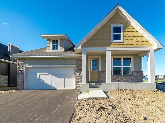 Completed new construction on premium lot! The 'Charleston' model greets you with stunning exterior architecture, gorgeous stone detail along with a covered & extended front porch. Main level living! Open, bright & cozy, this floor plan has natural light flooding in with all of the large windows. Quality details, thoughtful design and beautiful finishing touches; 2 bed, 2 bath, large 2+ car garage w/ 10' tandem push back for additional storage. LVP flooring on main level, SS appliances, oversized center island, quartz tops, 9' ceilings, gas fireplace in great room w/ stone front, and custom built in cabinetry. Ample storage throughout. Unfinished basement offers future bedroom/s, bathroom, living area and huge storage area. Easy access to both Cedar & 35. HOA takes care of mowing, snow removal, trash & irrigation maintenance.