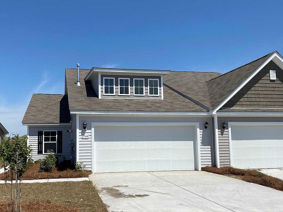Enjoy the laid back coastal lifestyle where all of your exterior maintenance is taken care of! A rare opportunity of a duplex being offered in Carolina Forest that also features an attached two-car garage. Upon entry you are greeted with a very open layout and high vaulted ceilings. The split bedroom floor plan offers privacy when you have guests visiting you at the beach, along with functionality. The rear covered porch with pond views is perfect for morning coffee or an evening sunset! Granite countertops, tankless water heater, 36" painted cabinetry, and stainless Whirlpool appliances with a gas range all included. This is America's Smart Home! Ask an agent today about our industry leading smart home package that is standard in every home. *Photos are of a similar Tuscan home. (Home and community information, including pricing, included features, terms, availability and amenities, are subject to change prior to sale at any time without notice or obligation. Square footages are approximate. Pictures, photographs, colors, features, and sizes are for illustration purposes only and will vary from the homes as built. Equal housing opportunity builder.)