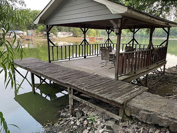 Brand new fully remodeled lake house with hard wood floor throughout and carpet in bedroom. Walk-in closet and large full bathroom and separate utility room. Outside amenities include a front porch with breathtaking view of 40+/- acre stocked fishing lake. Large lot with utility storage shed and a large covered dock and fishing pier. New water heater, hvac mini split unit, metal roof and much more. Includes an attic and crawl space that can easily be utilized for extra storage area. Virtual tour available with 3D Homes