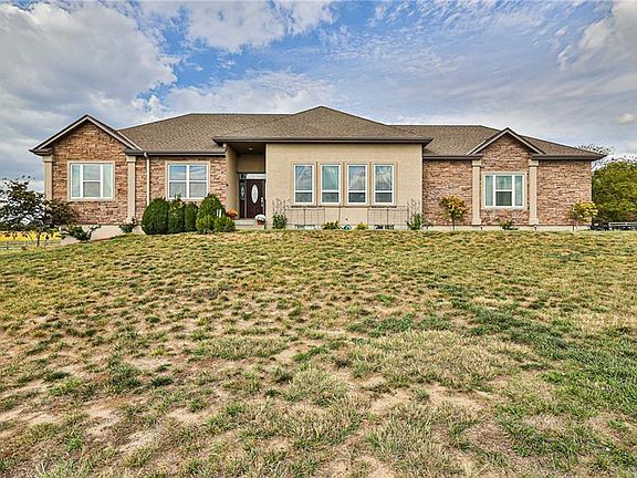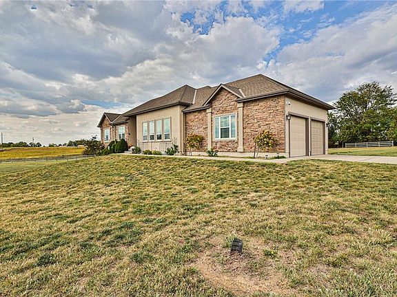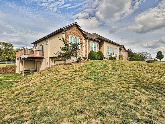 Welcome to country living by the lake! Gorgeous ranch home on 2+ acres with an open floorplan, soaring ceilings, large rooms throughout and high end finishes in highly desired but rarely available Rock Lake Village. Enjoy amazing views of the lake from your front windows. Granite countertops, wood floors, gas cook top, custom floor plan. Sellers finished 500+ square feet in the basement with a large bedroom, full bathroom and bonus room which would make a great office, library, exercise room or sitting room. Two decks-one off of the living room and another off of the primary bedroom. Large 2 car garage on the main level and utility garage in the walk out basement for a third car, lawn equipment, toys or workshop. Lots of storage in the basement. Can have 2nd washer and dryer in the basement. Live the resort life in this private luxury lake community with estate sized lots, swimming, boating, fishing, and trails. Just minutes from Lee’s Summit and Blue Springs. All of this and low Johnson County, MO taxes.