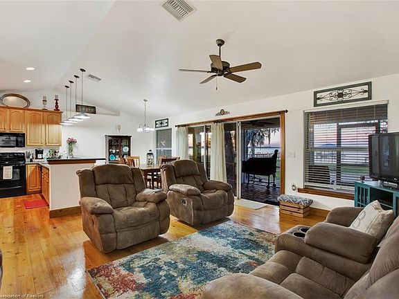 This must see lakefront home offers outdoor lake living at its finest. Lake Reedy is a championship bass fishing lake withch is world renowned. As you enter this fabulous home on the shores on Lake Reedy, a 3483 acre lake. You will immediately notice the superb craftsmanship of this 3 bedroom 2 bath beauty. Features include hardwood floors,open floor plan,huge screened in lanai, and double decker dock.Eat in kitchen with large breakfast bar with hardwood cabinets and granite counters. Large dining area over looking the lake. Master bedroom is large and has a very nice master bath with spacious walk in shower. Paver driveway, lanai, and patio in the backyard. 2 car garage for all the toys. Lanai is screened with gorgeous sunsets views.This lakefront lot is over 1/2 acre in size and is partially fenced.