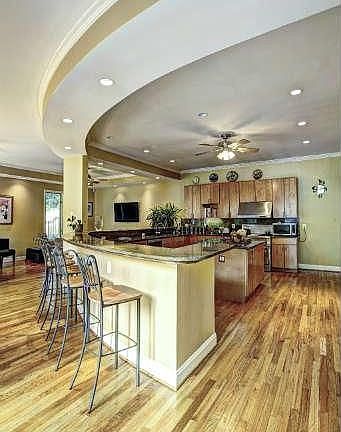 - Kitchen Island, Window Treatments, Recessed Lighting, Soaking Tub, Wood Floors, Sprinkler System, Formal/Separate Dining Room, Kitchen - Gourmet, Family Room Off Kitchen, Curved Staircase, Wine Storage