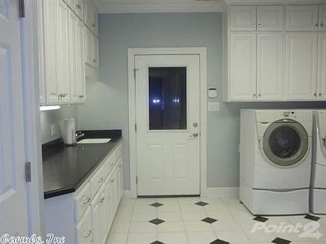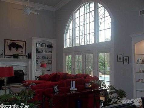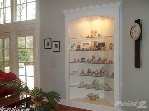 Master down + guest BR complete with walk in shower. Half bath, huge laundry area, walk in pantry. Kitchen has round island in center with a prep sink. Eat-at bar w/sink & surrounding cabinets w/built in double oven. Black Corian countertops, black appliances. Kitchen/living rm w/16' ceiling. Beautiful windows. Inground pool w/pool house (living/kit/bath). Off laundry rm/breezeway to a heated/cooled 16x20 metal storage bldg. 3-Car garage. Theater/media room w/wet bar. Sprinkler. Brokered And Advertised By: First Realty Group, Inc. Listing Agent: Jeanie Corkins
