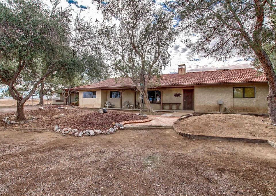 Horse Enthusiast's Paradise!! At 7.7 irrigated acres this parcel will fit the needs of anyone looking for that perfect place. Must see to appreciate all it has to offer. Mature trees line both sides of the driveway and this is just the start. 3 irrigated pastures with shades, Nicest barn on the block with 7 stalls and 2 tack rooms. Huge shop in the back, 2 more out buildings with carports. Plenty of storage for all your needs. House features vaulted ceilings, new wood laminate flooring throughout, 2 Master Bedrooms, great room, and open concept kitchen that will lead you right out on your covered porch.